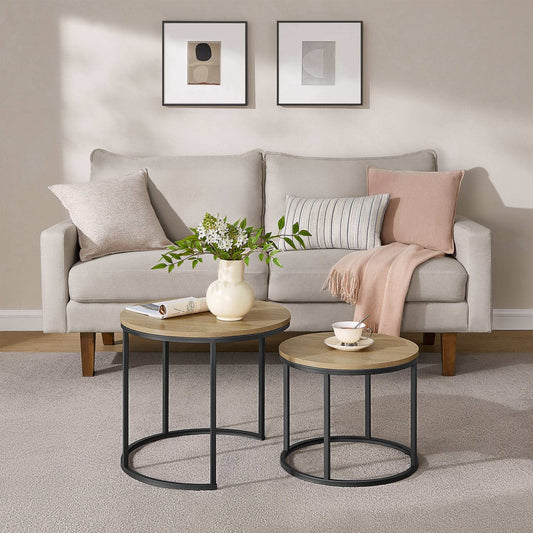 Кръгла холна маса 2 бр - дъб сонома / черни крака
