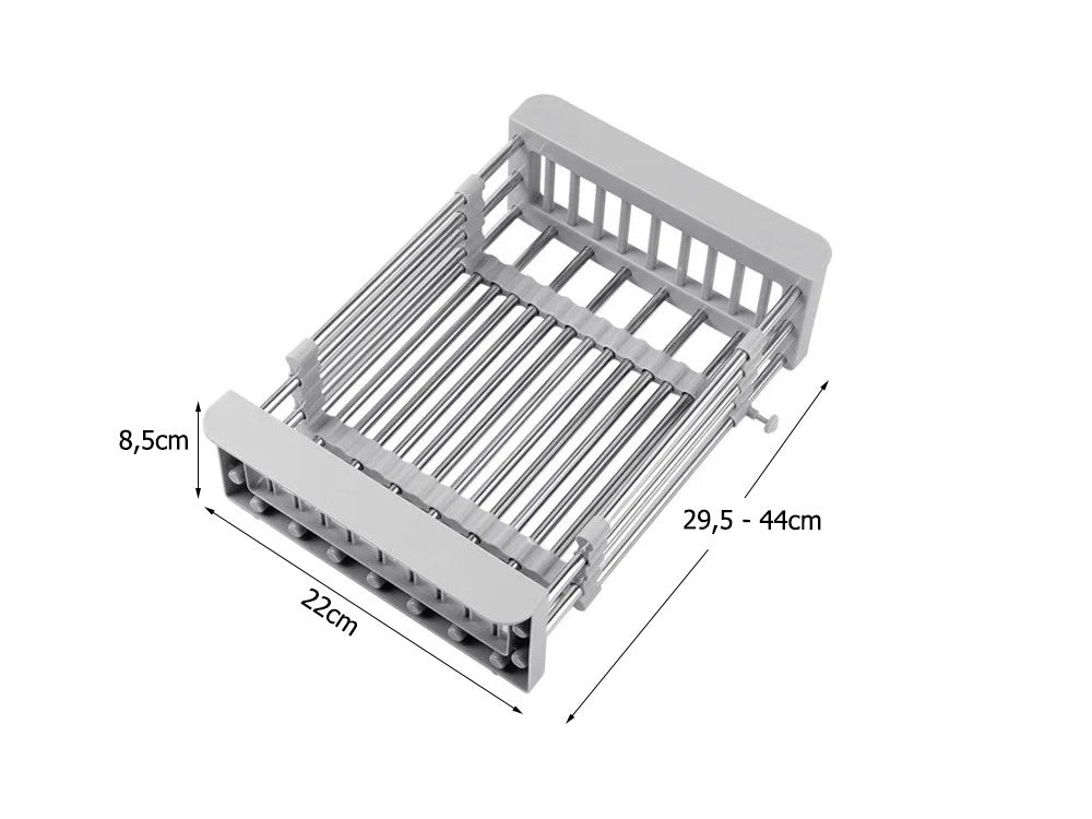 Благодарение на телескопичния си дизайн, кошницата може лесно да се регулира според размера на вашата мивка – от 29,5 см до 44 см, което я прави подходяща за всякакви кухни.
