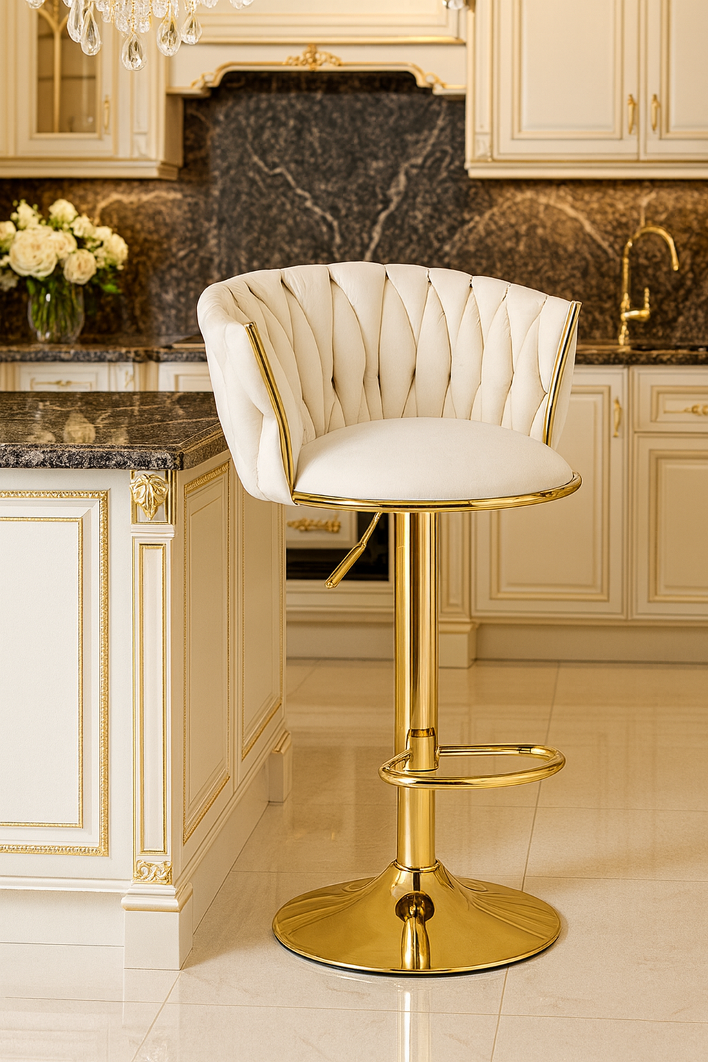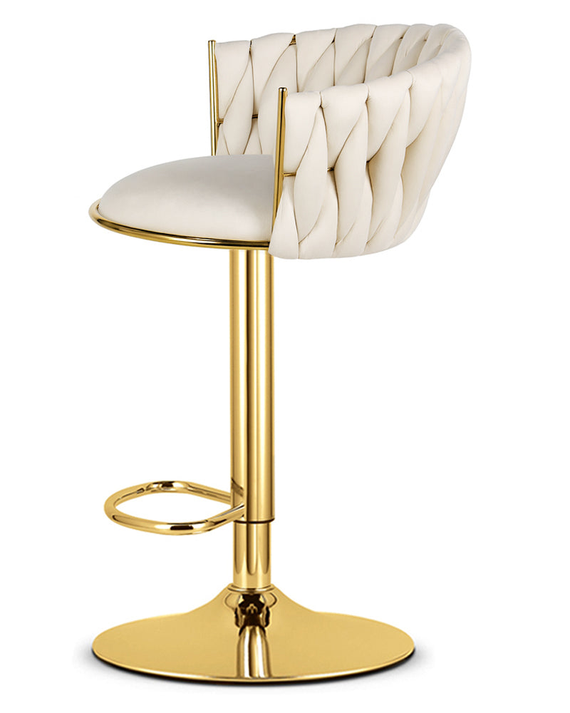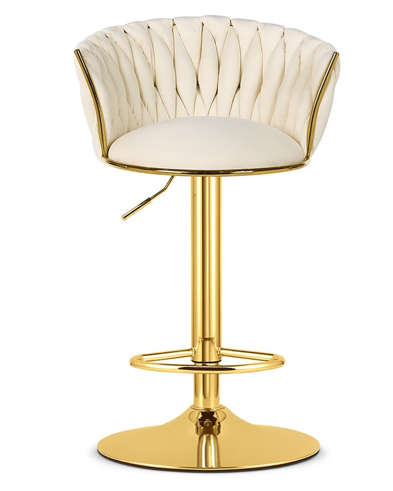 Добавете стил, комфорт и функционалност към интериора си с този елегантен тапициран табрет в нежен бежов цвят. Меката кадифена седалка и изчистеният дизайн с златисти хромирани крака го правят отличен избор за кухня, бар плот или домашен кът за отдих.